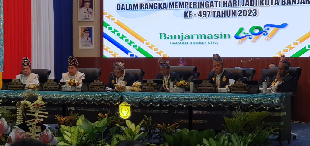 BANJARMASIN, jukung.id – Rapat Paripurna Istimewa DPRD Kota Banjarmasin menjadi rangkaian kemeriahan peringatan Hari Jadi Kota Banjarmasin ke-497 Tahun. Rapat digelar di ruang rapat paripurna DPRD Banjarmasin. Kamis (21/9/2023).